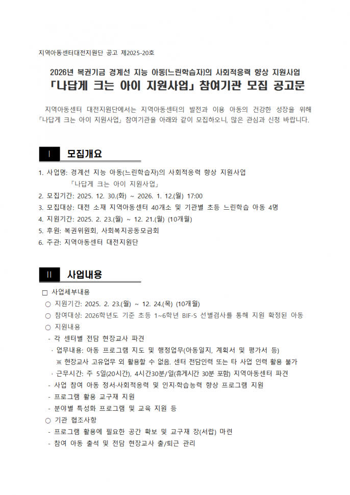 [공지] 2026 나답게크는아이 현장교사 채용 공고(연장)